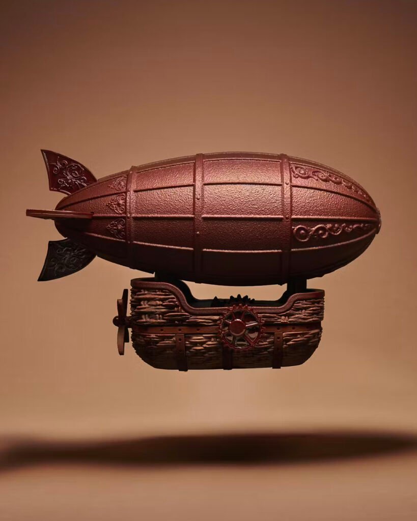 Pour célébrer les fêtes de Pâques 2026, le chef pâtissier Maxime Frédéric et ses équipes nous convient à un voyage onirique à bord d’un dirigeable tout chocolat. Baptisée « La Belle Envolée », cette œuvre magistrale capture l’esprit des grandes explorations de la Belle Époque. Entre ciel et terre, l’engin déploie une enveloppe ornée d’arabesques au style Art nouveau, tandis que les engrenages de sa nacelle arborent une passiflore délicate, hommage floral et géométrique à la célèbre façade Art déco de l’hôtel Cheval Blanc Paris.