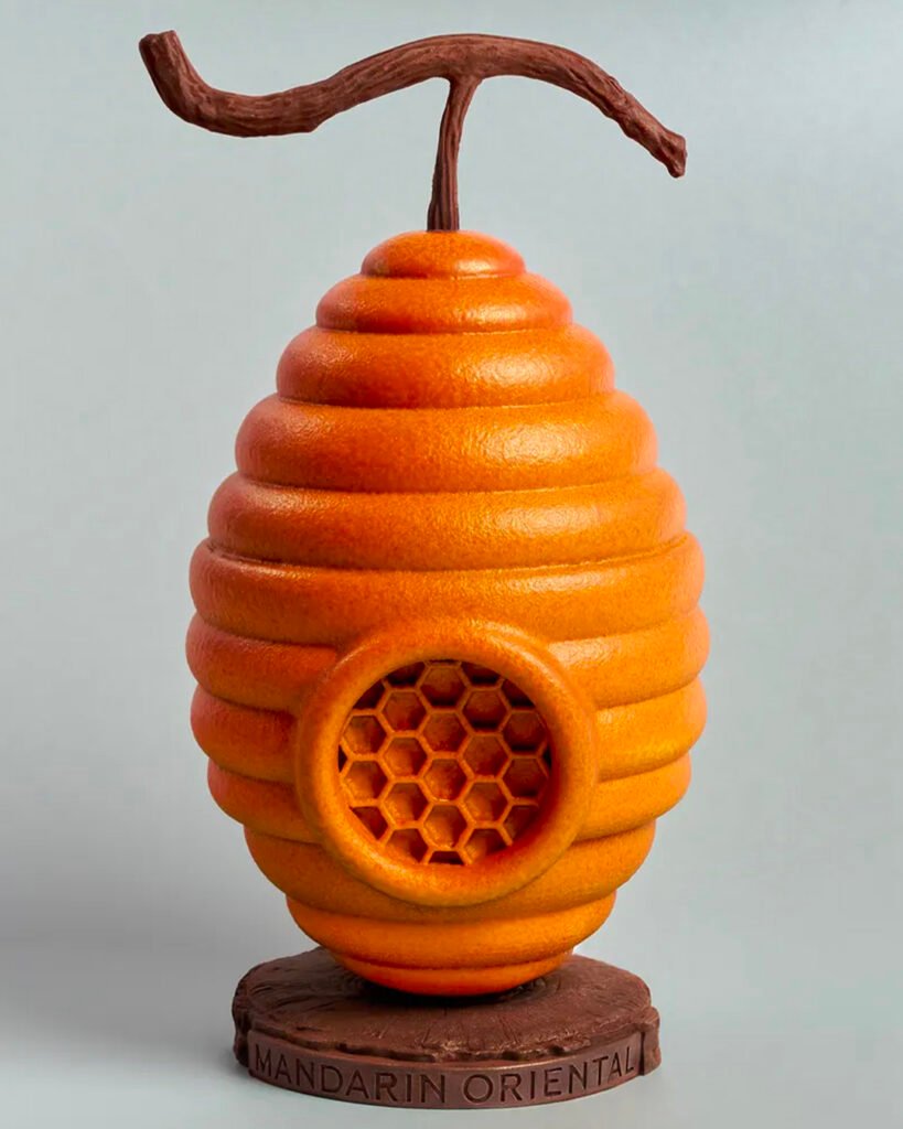 Pour célébrer le printemps 2026, le Chef Pâtissier Julien Dugourd dévoile une création intitulée « La Ruche », rendant un hommage direct à la biodiversité urbaine. Cette œuvre sculpturale s’inspire des ruches installées sur le toit du Mandarin Oriental Paris, traduisant l’engagement du palace pour la préservation de la nature. Le design de l’œuf, aux courbes généreuses et à la texture dorée, révèle un travail de précision sur le chocolat qui laisse entrevoir les alvéoles caractéristiques des rayons de miel, transformant cette gourmandise de Pâques en un véritable objet d’art.